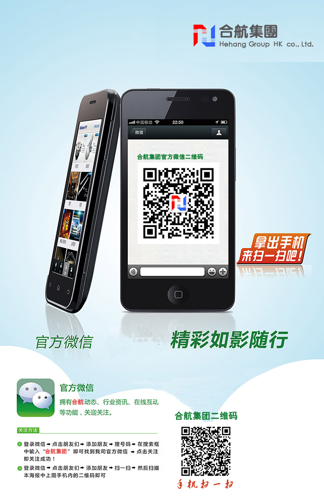 合航集團官方微信開通及合航集團二維碼上線啦!在這里不僅可以了解公司動態,行業資訊,還有更多的精彩內容哦。快快關注吧!(別忘了推薦給我們的客戶和合作伙伴哦)。