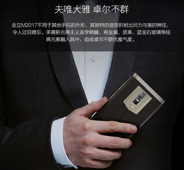 在產(chǎn)品布局上,金立從沒跳入低價(jià)競(jìng)爭(zhēng)的泥潭,反而一直在布局中端和高端市場(chǎng),特別是最高端的商務(wù)市場(chǎng)。2017年即將到來(lái)之際,金立M2017發(fā)布,獲著名導(dǎo)演馮小剛和夫人徐帆攜手代言,再一次拔高了我們對(duì)這款高端商務(wù)旗艦的期待。